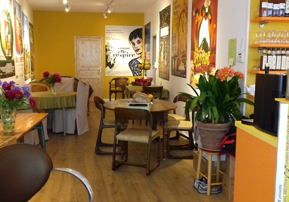 Tearoom, biologische snacks, ontbijt, lunch, ter plekke of om mee te nemen. Zelfgemaakte gerechten op basis van verse producten, voornamelijk bio en uit de omgeving: boekweitflensjes, hartige taarten, sandwiches, gratins, seizoenssalades, pannenkoeken, ijs...
