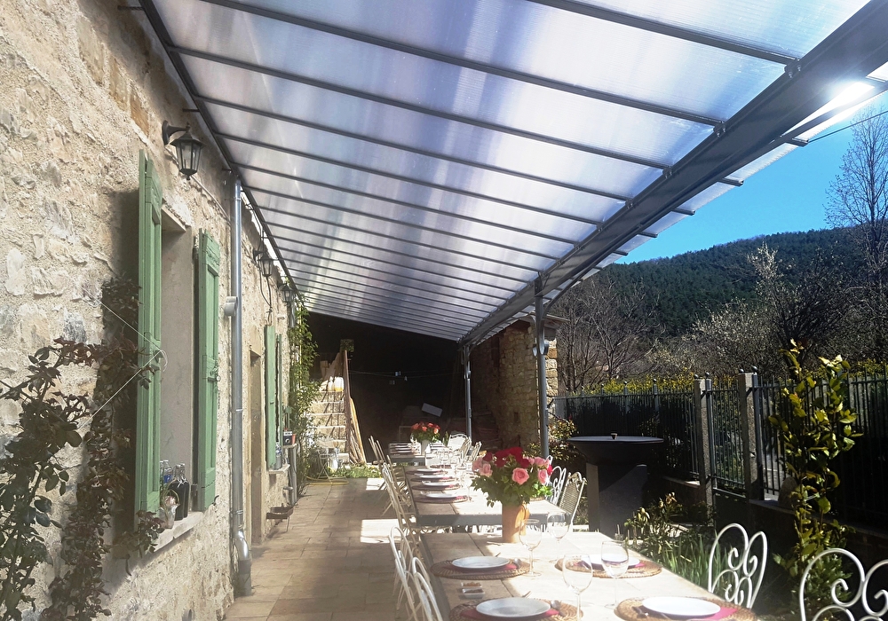 Au bord de La D173 entre Gumiane et La Motte-Chalancon/Cornillon. Grande terrasse de 25 mètres bordée d'une grille et de buis.