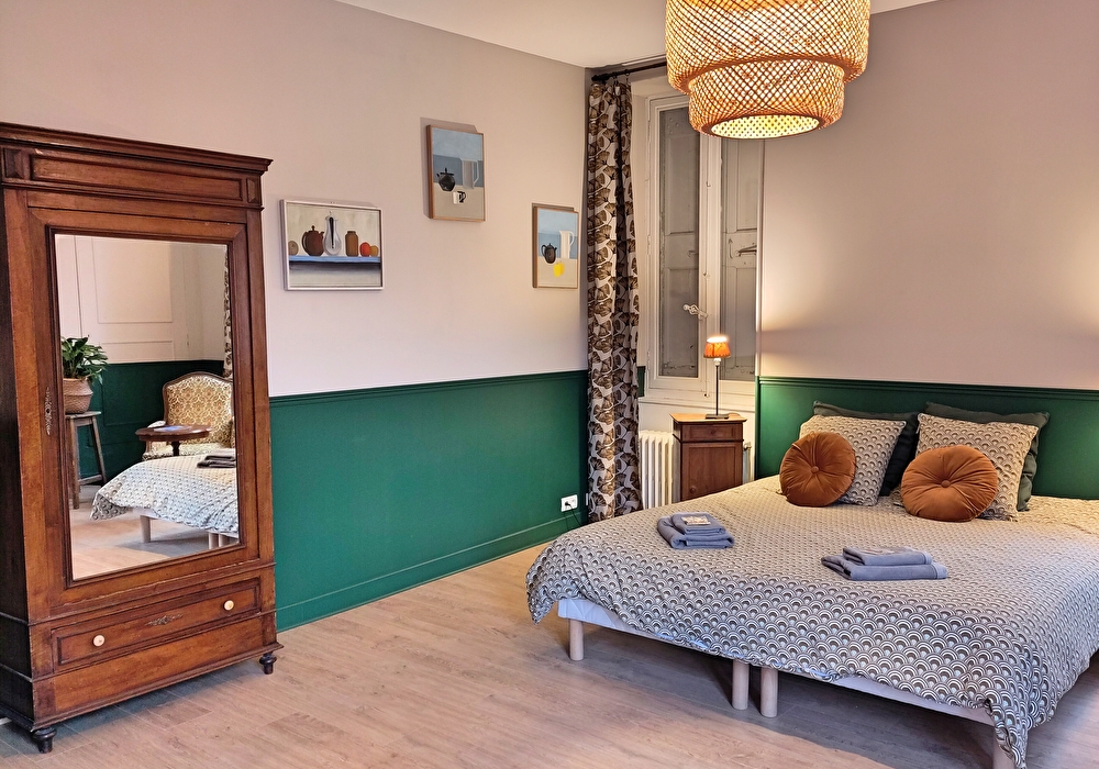 1 van 32m² met badkamer en douche en 2 eenpersoonsbedden (90cm) die gecombineerd kunnen worden tot 180cm en een extra eenpersoonsbed (90cm). Het toilet bevindt zich in de badkamer. Een terras op het zuidoosten op de overloop waar het ontbijt wordt geserveerd en ligstoelen om te zonnebaden! Een zitkamer op de begane grond. Aparte ingang voor de woonkamer en de slaapkamers.